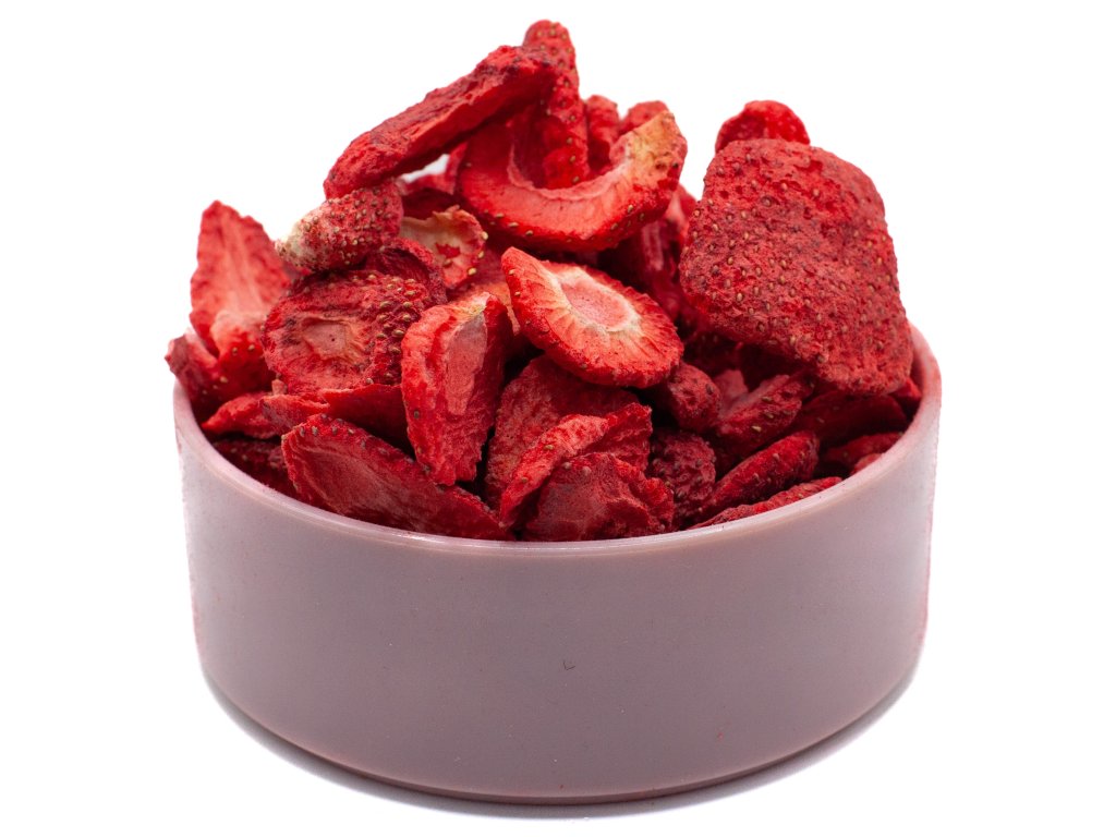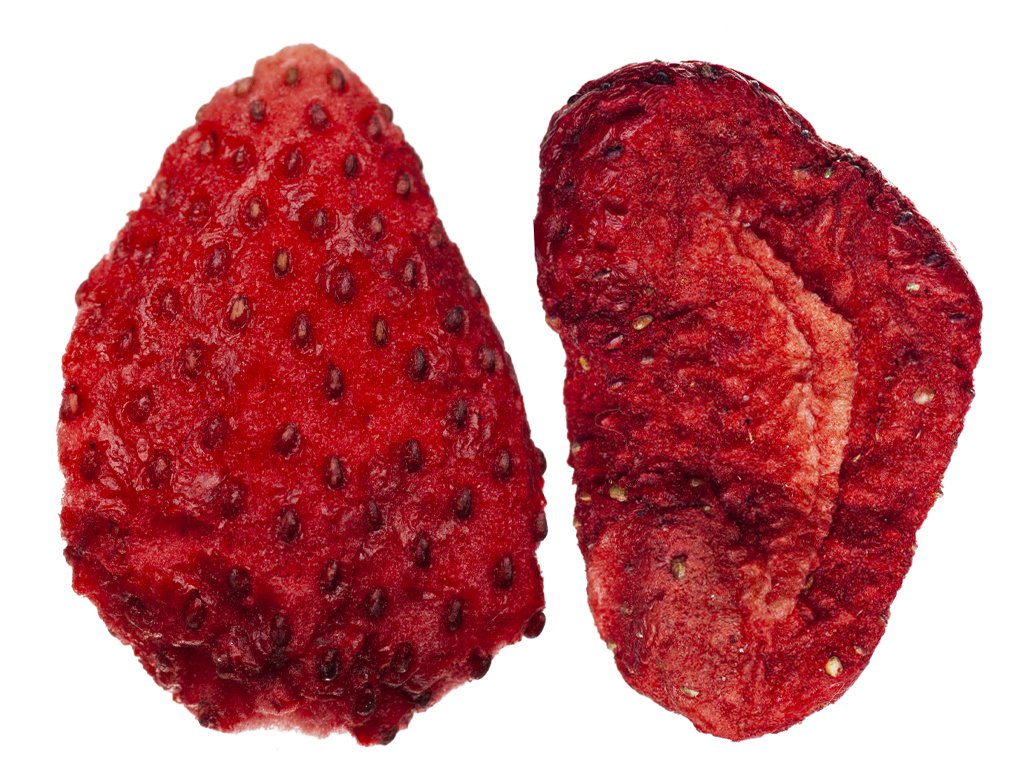 Pri sušení mrazom je ovocie zbavené všetkej vody v niekoľkých fázach, a to im zaistí chrumkavú chuť! Takéto sušenie trvá kľudne i niekoľko dní.