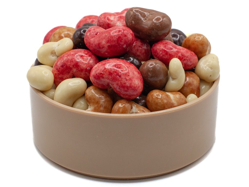 Zloženie: | KEŠU ORECHY, cukor, kakaové maslo, kakaová hmota, rastlinný tuk (palmový), sušená SRVÁTKA, slnečnicový lecitín E322, arabská guma, šelak E904, ryžová múka, JOGURTOVÝ prášok, sušené MLIEKO, kakaové maslo, aróma tiramisu |