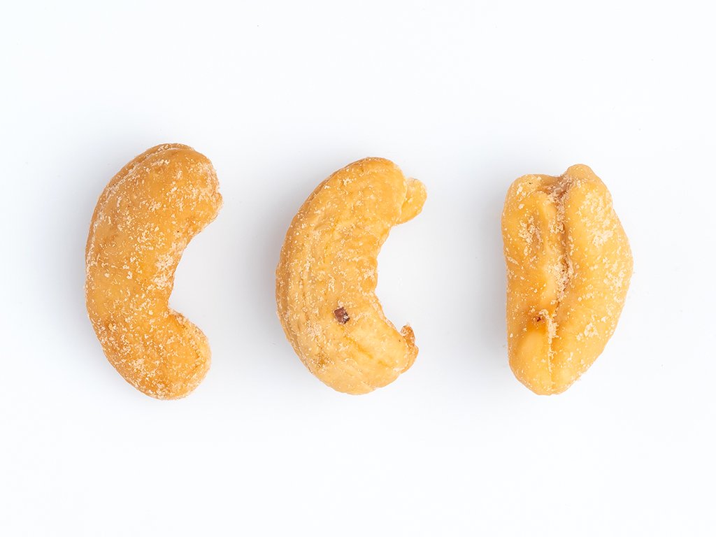 Zloženie: | Kešu pražené solené 98 % (jadierka kešu orechov 98 % soľ 1,5 %, rastlinný repkový olej 0,5 %), zmes korenia dymovej arómy 2 % (E621, soľ, maltrodextrin, E 504, aróma – obsahuje alergén: sója, mlieko, lepok, zeler |