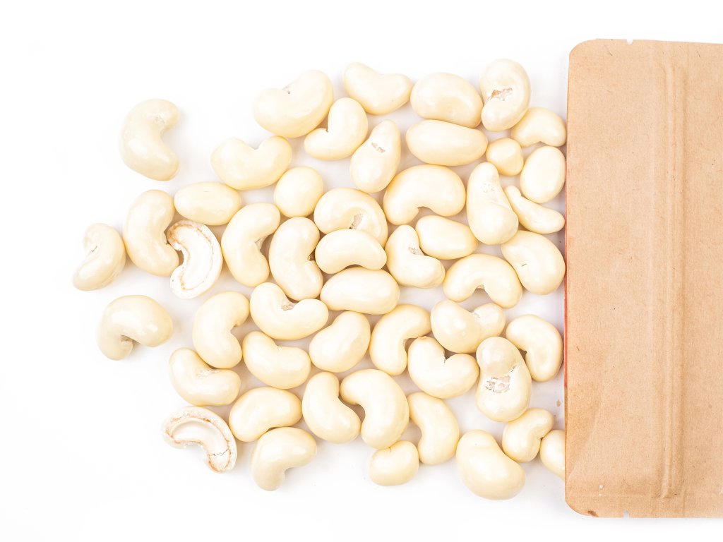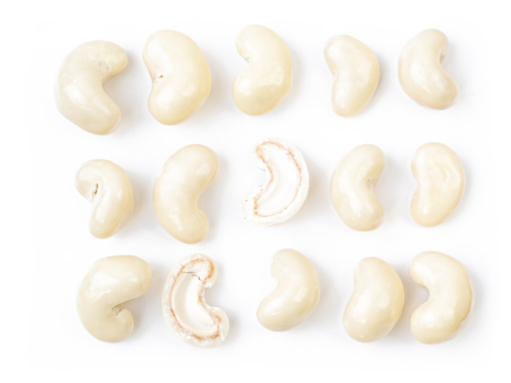 - Predtým ako sa všetky kešu opražia, majú zelenú farbu.