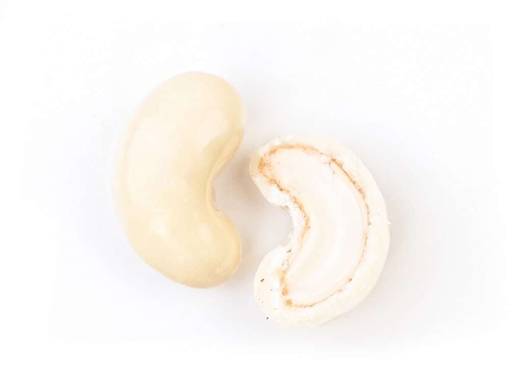 - Predtým ako sa všetky kešu opražia, majú zelenú farbu.