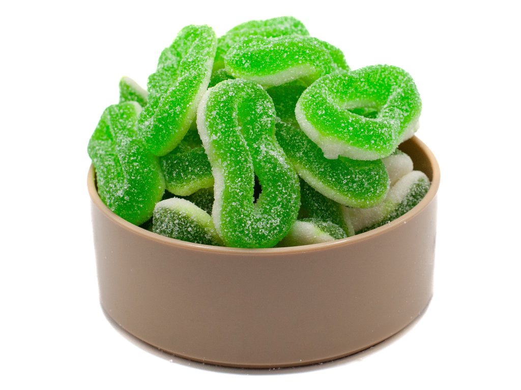 Okrem tejto srandy sú strašne dobré hlavne na maškrtenie. Viem, že nie vždycky máš chuť na sladkú čokoládu. A tieto želé kyselkavé krúžky s príchuťou jablka ti padnú vhod. Šup do komory s nimi!