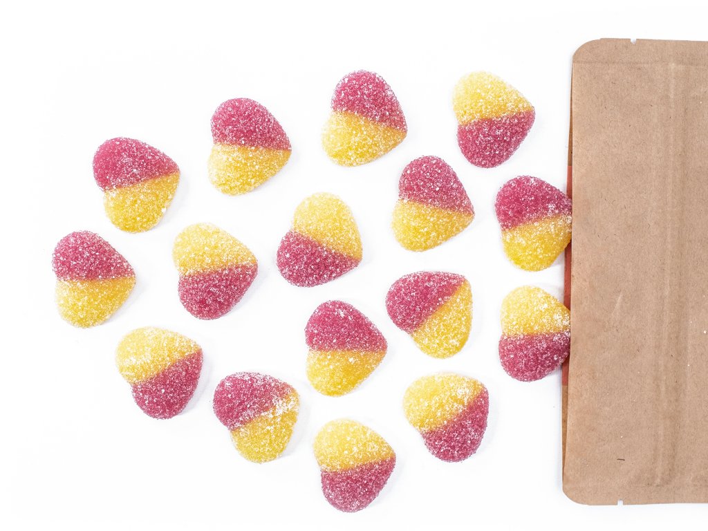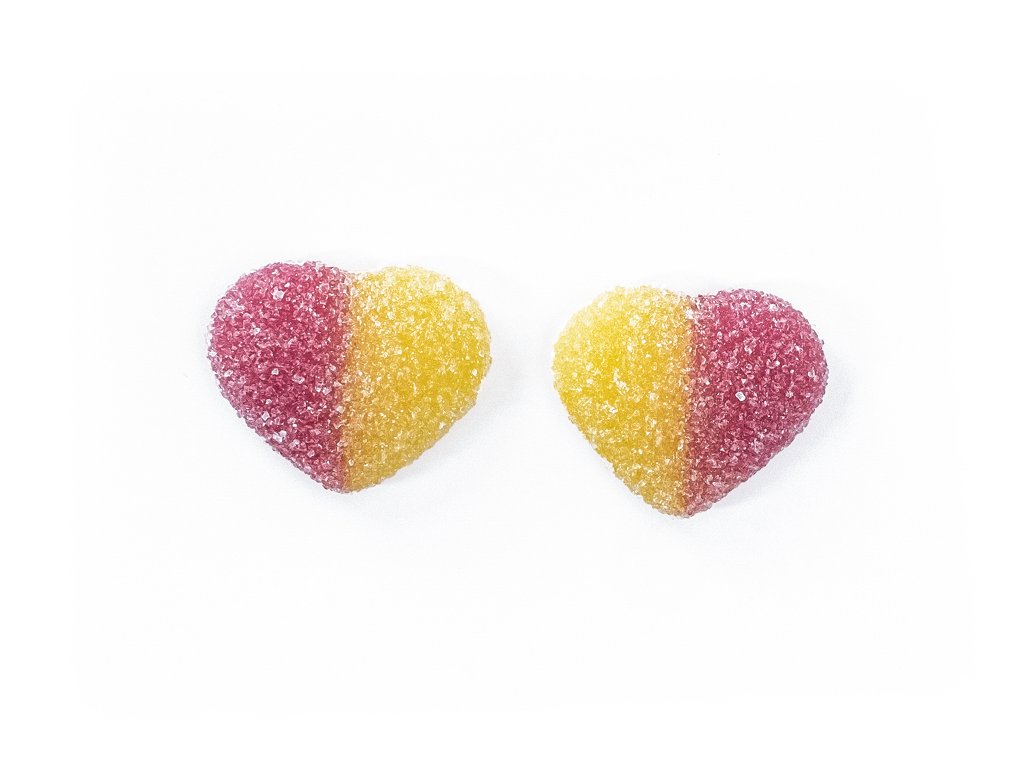 Na povrchu kyslá, vo vnútri sladučká. Môžeš na nich jazyk nechať. Želé srdiečka s broskyňovou príchuťou maškrtím, keď nemám chuť na čokoládu a slanú tyčinku taktiež práve nechcem.