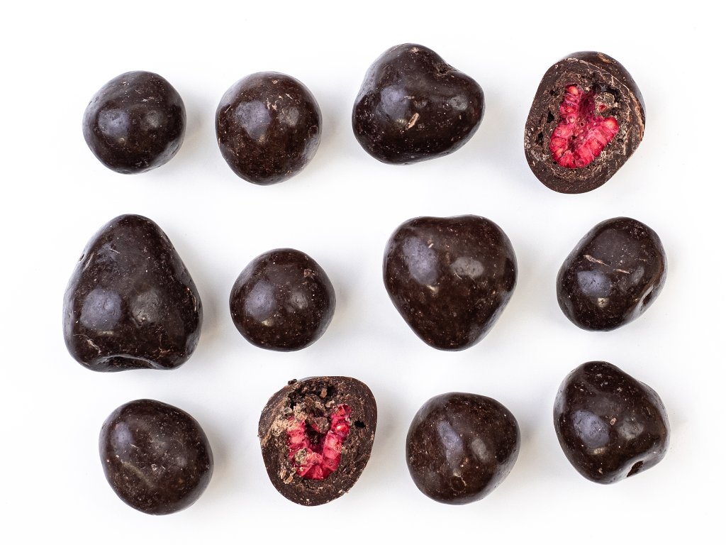 Zloženie: | cukor, kakaová hmota, kakaové maslo, SOJOVÝ LECITIN E322, prírodná vanilková aróma, lyofilizované maliny, glukózový sirup, arabská guma, šelak |