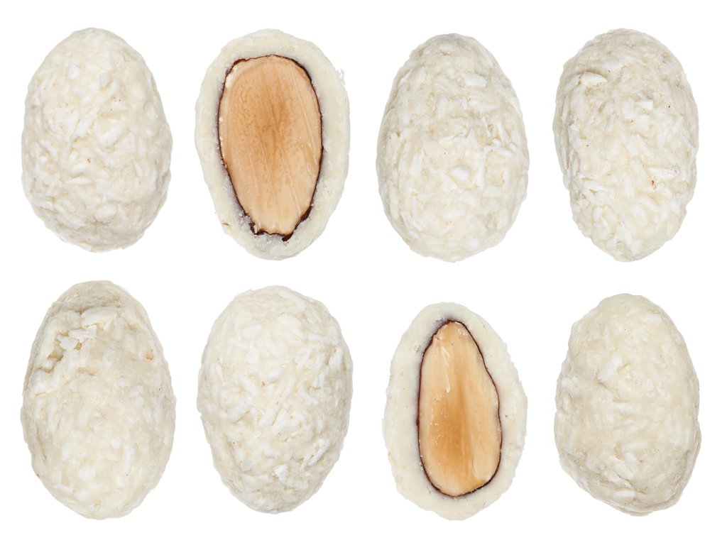 Mandle v bielej čokoláde s kokosom 300 g