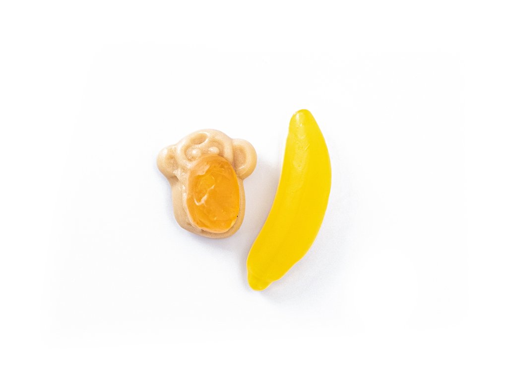 Pri výrobe želé opíc a banánov nebol skrivený žiadnej živej opičke ani chĺpok. Na môj veveričkový kožúšok prísahám. Ja mám rada zvieratká. A ty budeš mať želé opice a želé banány rád tiež.