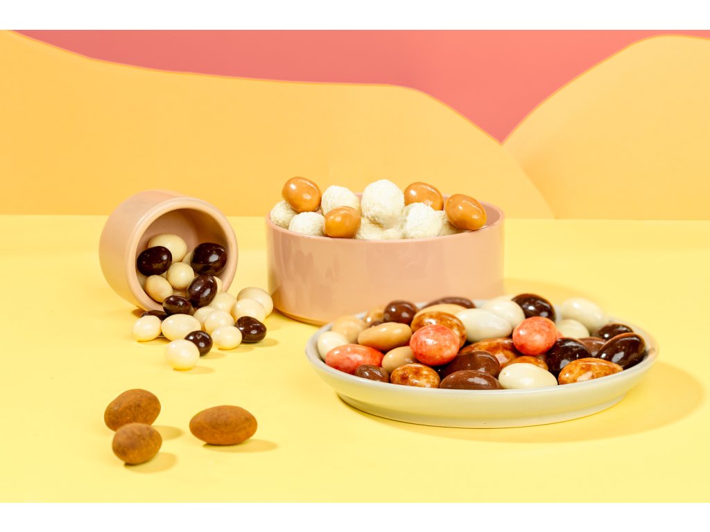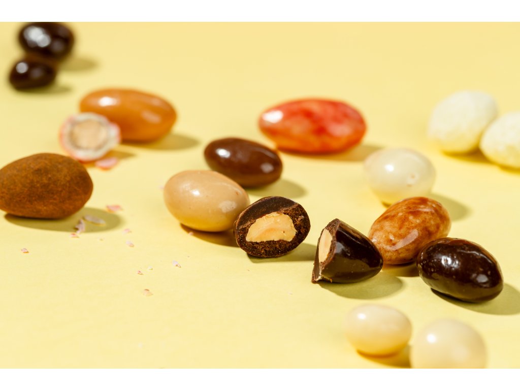 🍓 Mandle MIX (150 g) – Pre nerozhodných gurmánov! Kombinácia mandlí v horkej, mliečnej, jahodovej, jogurtovej a tiramisu čokoláde – každé so iné, každé sústo dokonalý pôžitok!
