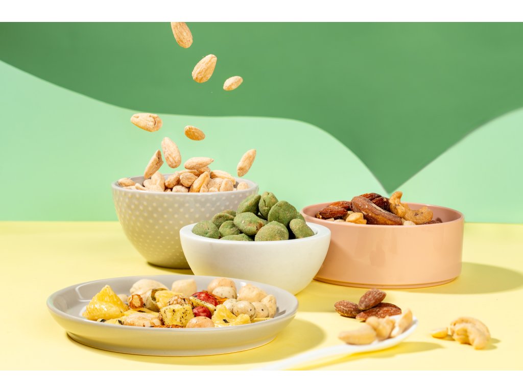 🌰 Slaný mix (140 g) – Dokonalá kombinácia rôznych orechov, ktoré spája jemná soľná kôrka. Ideálne, keď sa nemôžeš rozhodnúť, čo chceš chrúmať ako prvé!
