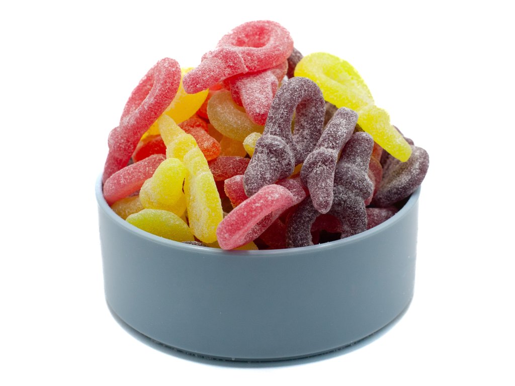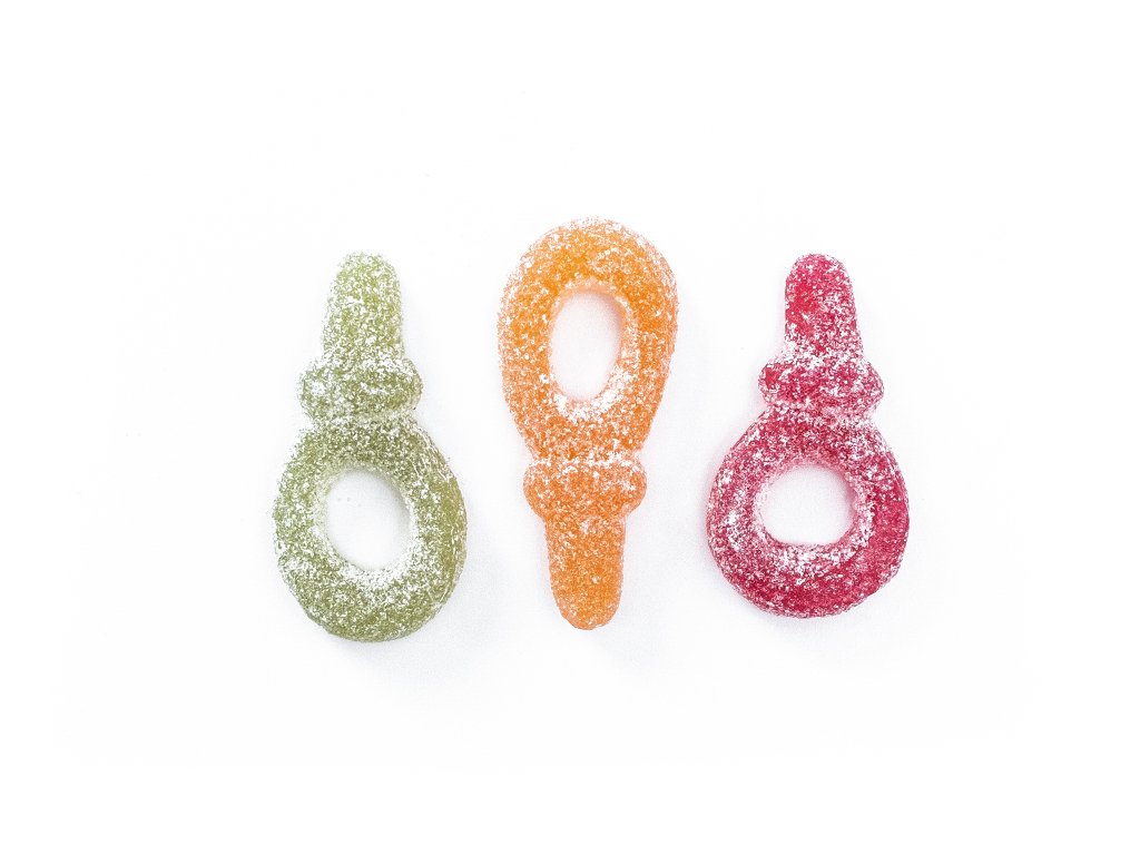 Zloženie: | cukor, glukózový sirup, modifikované škroby, voda, kyseliny (kyselina mliečna, kyselina fumarová, kyselina jablčná), farby (antokyany, extrakt z papriky, kurkumín, chlorofyly), príchute |