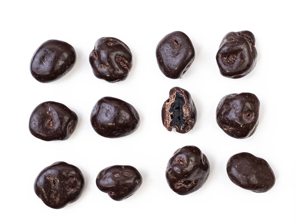 Zloženie: | cukor, kakaová hmota, kakaové maslo, rastlinné tuky palmový olej, olej z maslovníka, sal. olej z jadier manga, MLIEČNY TUK, slnečnicový lecitín a polyglycerylpolyricinoleát, prirodná vanilková aróma, višne, dextrozam regulátor kyslosti: kyselina citronová, aróma, tapiokový škrob, cukor, leštiaca látka šelak, KOKOSOVÝ olej, konzervant kyselina sorbová |