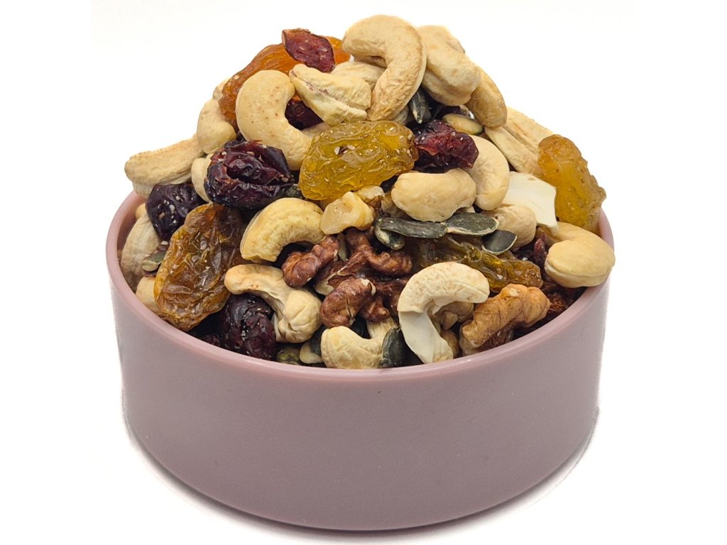 Zloženie: | KEŠU, VLAŠSKÉ ORECHY, dyňové semienka, machovka peruánska, brusnice s jablčným koncentrátom, hrozienka |