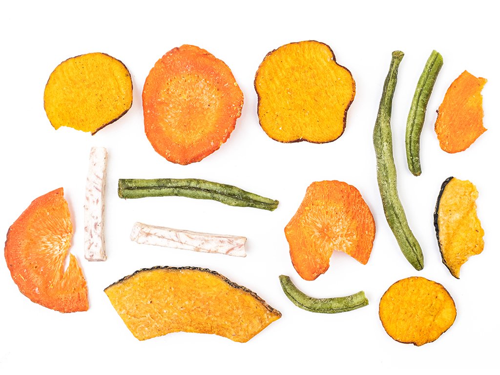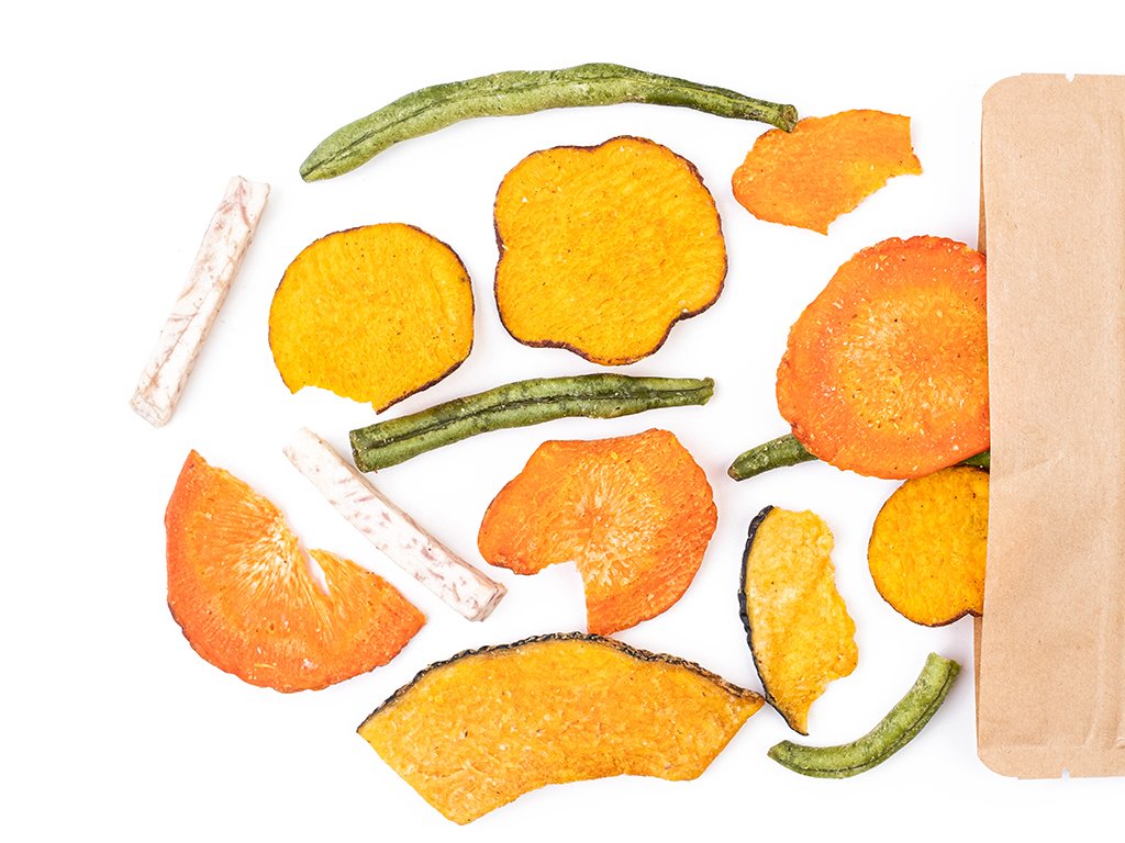 Tieto chipsy sú oveľa zaujímavejšie než bežné zemiakové — a navyše aj chutnejšie! Sú farebné, chrumkavé a zachránia každý večer pred obrazovkou. A čo v nich nájdeš? Bataty, cuketu, taro, mrkvu a zelené fazuľky — zeleninový festival na každé zahryznutie. Hrajú všetkými farbami, bavia, skvele chutia a vyzerajú jednoducho štýlovo.